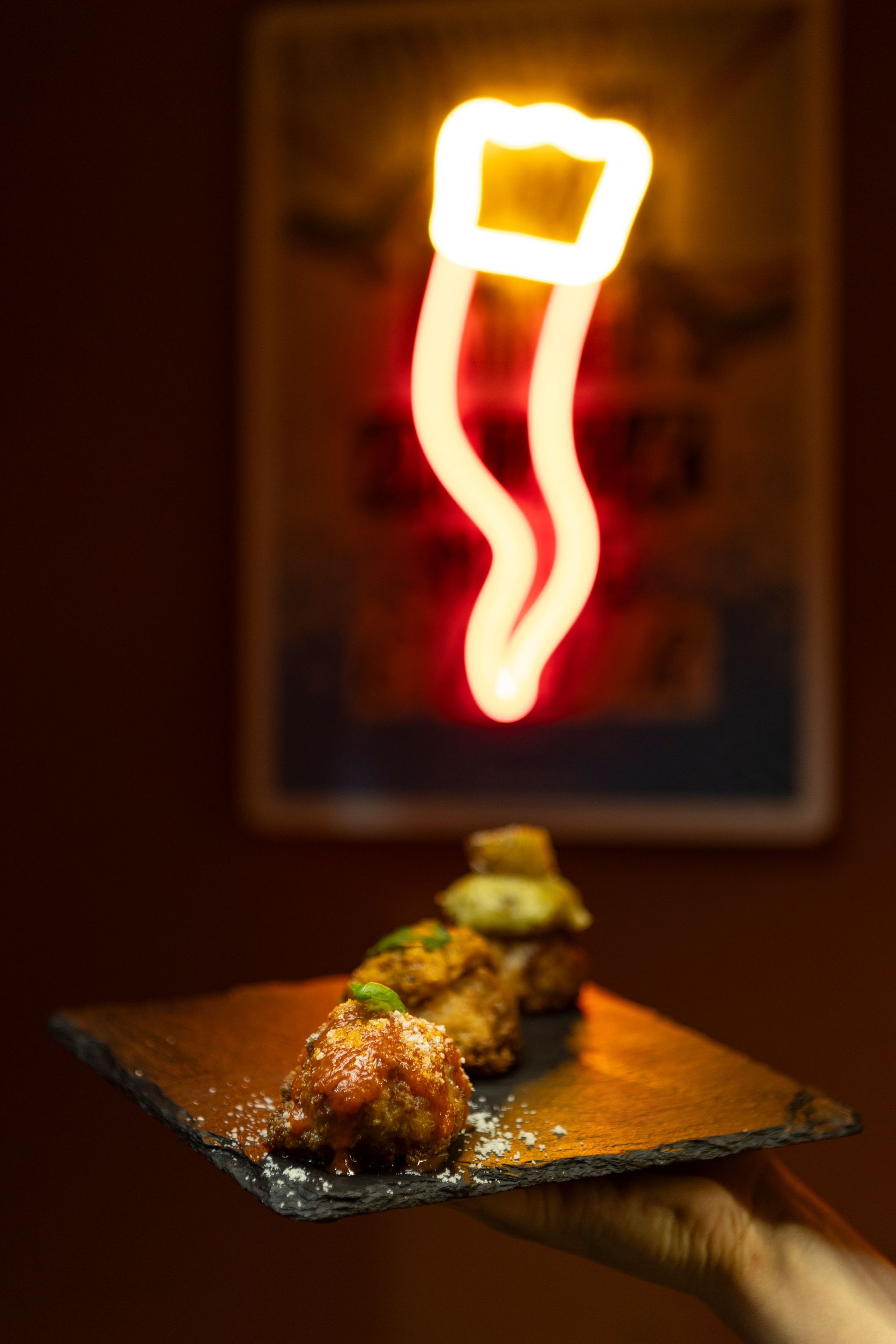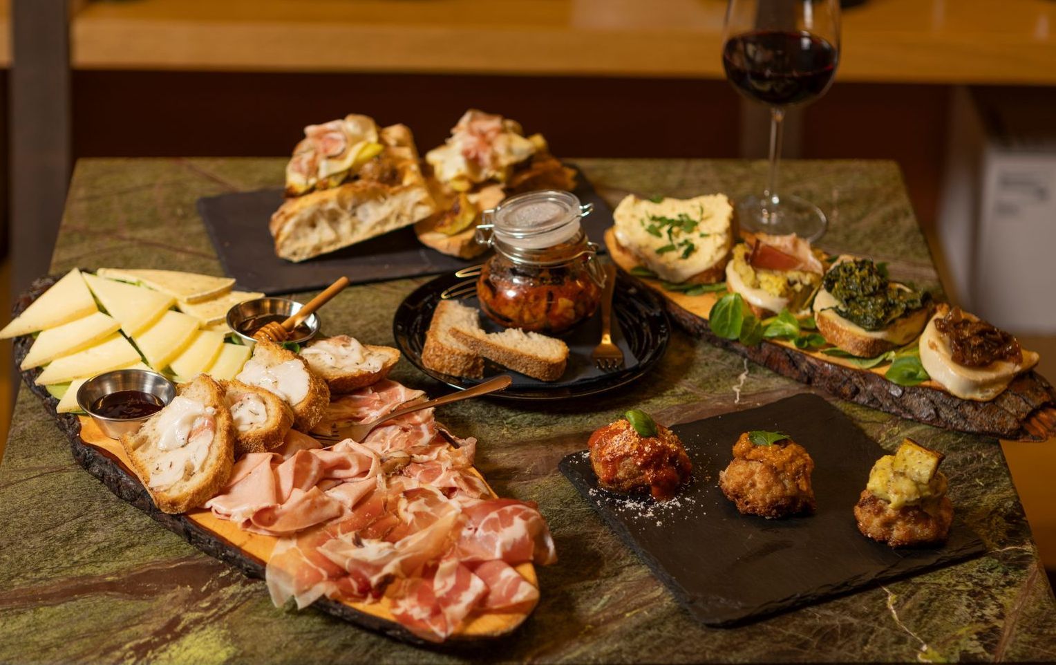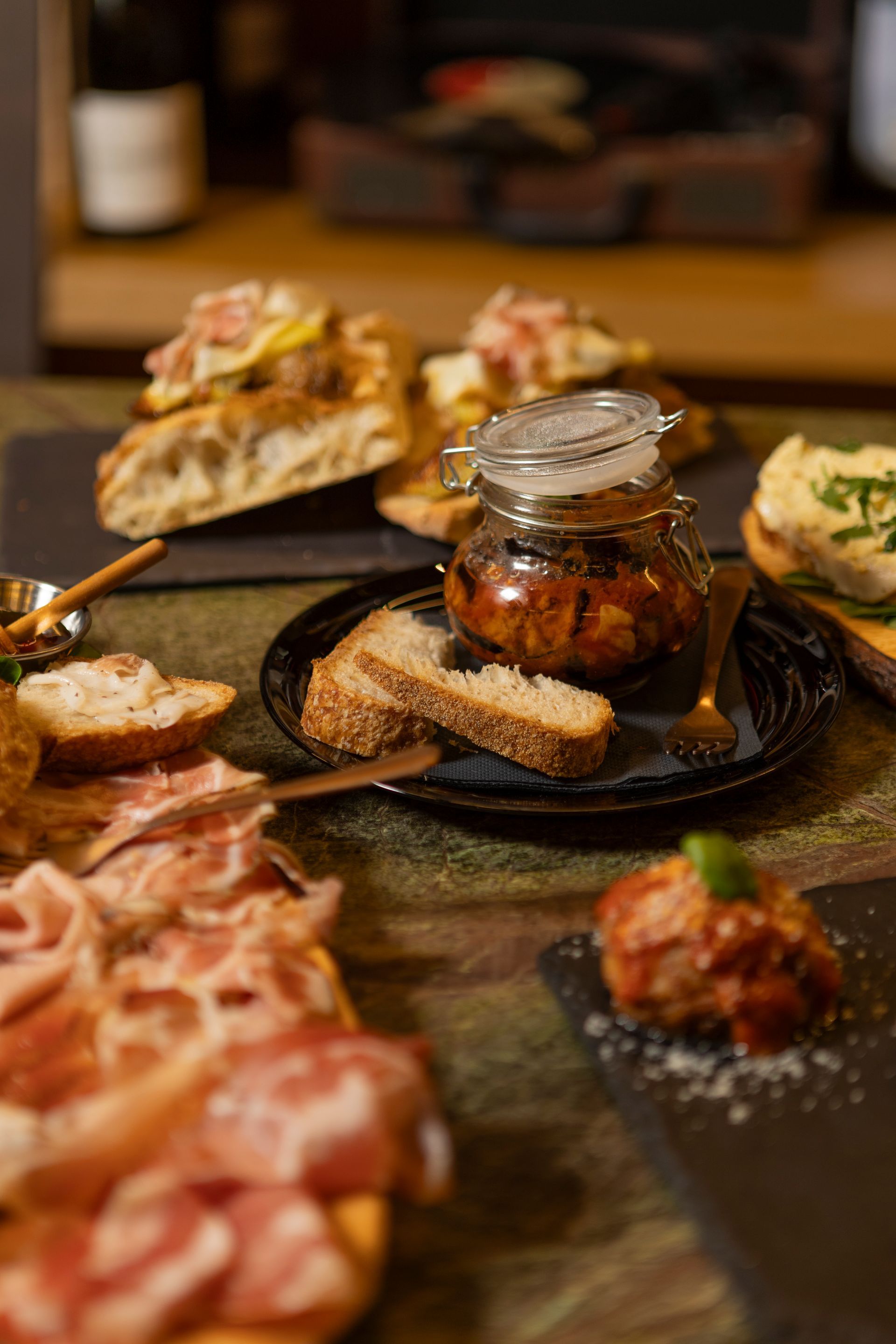 Le bruschette, preparate con pane cafone, incontrano condimenti ricercati che celebrano la semplicità fatta eccellenza. Le polpettine e la nostra selezione di carni alla brace aggiungono calore e convivialità, profumi che richiamano la cucina di casa.